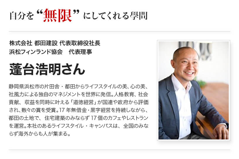 経営をしていると、人の問題、売上の問題自分の限界を感じる時があると思いますが、この學問は「自分を無限にしてくれる學問」です。