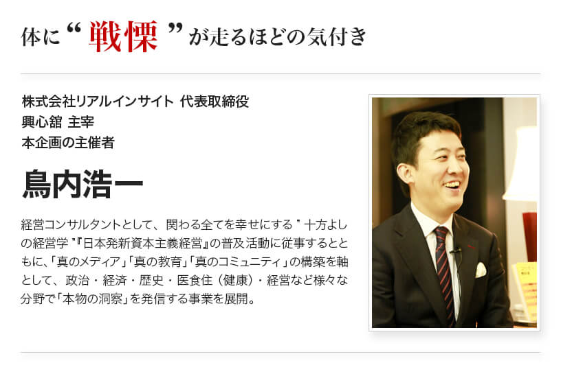 今回の企画を行う 【 興心舘(こうしんかん) 】 を主宰しております、リアルインサイト鳥内浩一です。