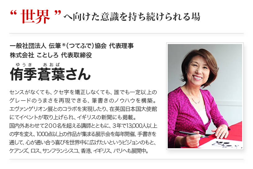 また、4年ほど學んでいるうちに、協会を作り、書を教える先生を全国で200人ほど養成することができ、2018年には世界6カ国で筆ペンのワークショップを開催し、日本語を伝えられるようになり、出版もできました。