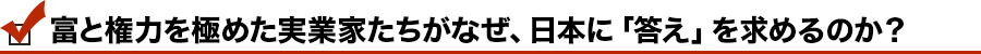 スティーブ・ジョブスはなぜ、禅を研究していたのか?アップルの新社屋の形に秘められた意味とは?オラクル創業者ラリー・エリソンは、なぜ京都に家を持ち、現在も密かに日本で学んでいるのか。次世代の真のリーダーになるために絶対必要な要素がここに隠されています。